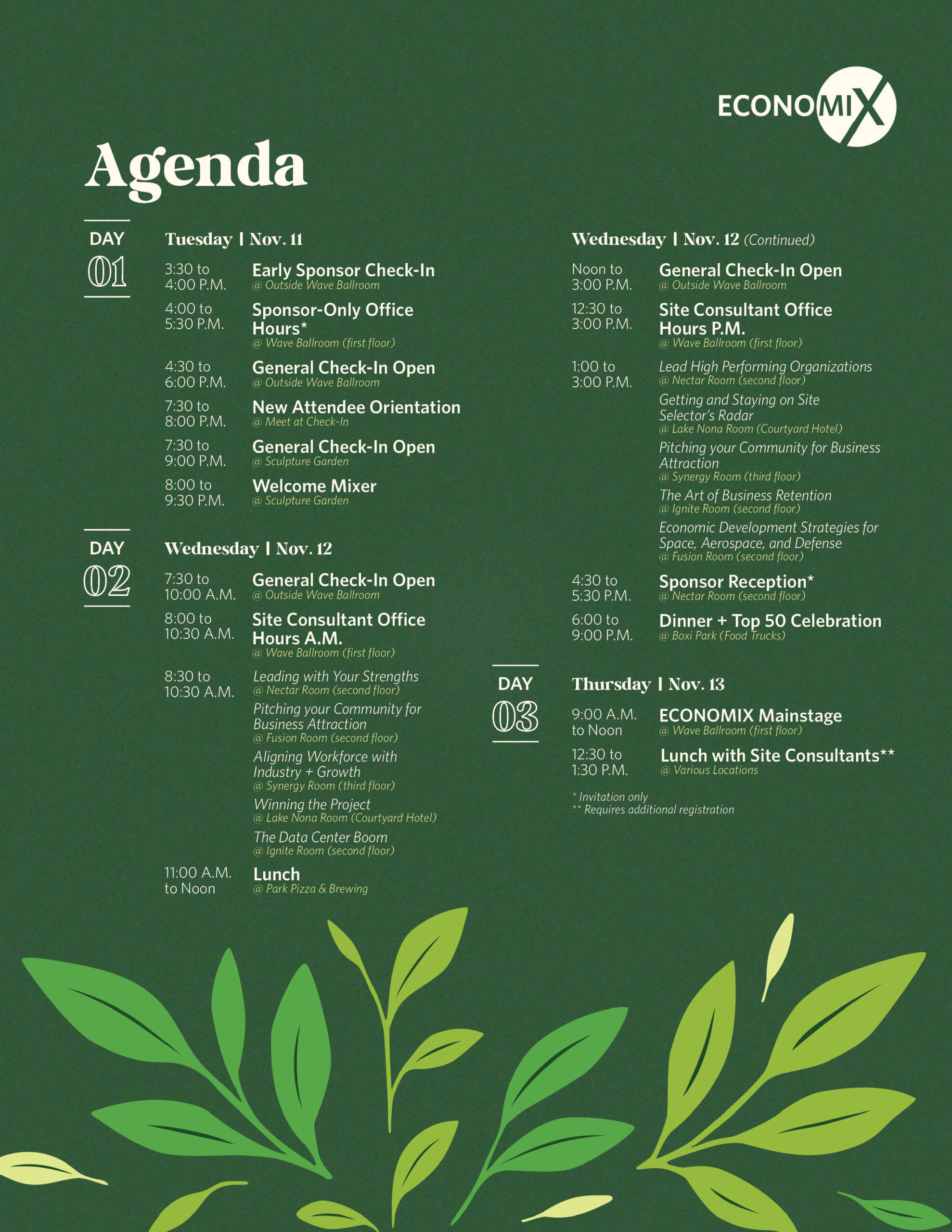 Get ready for ECONOMIX 2025, in Lake Nona, Florida! This is your go-to page for everything you need to make the most of your time at ECONOMIX. Here, you can view fellow attendees, meet our top site consultants, and stay up-to-date with our latest agenda.